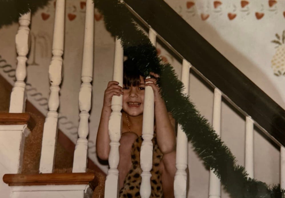 In the photo, I’m seven or eight, sitting on the stairs of my childhood home with my face pressed between the spindles.